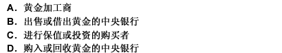 黄金市场由供给方和需求方组成。黄金的供给方主要有产金商、出售或借出黄金的中央银行、打算出售黄金的私人或集团,黄金的需求方主要有黄金加工商、购入或回收黄金的中央银行、进行保值或投资的购买者。