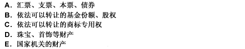 商业银行可接受的财产质押的选项是 ()