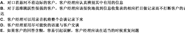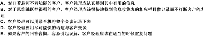 E.如果客户的回答含糊,容易引起误解,客户经理应该在适当的时候重复问题