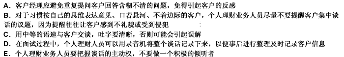 E.个人理财业务人员要把握谈话的主动,不要做一个积极的倾听者
