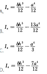 图示为一边长为a正方形截面,y、z为截面的两对称轴,y1、z1为过截面形心的两正交轴,则截面对轴的y1的惯性矩以及对y1、z1轴的惯性积分别为()